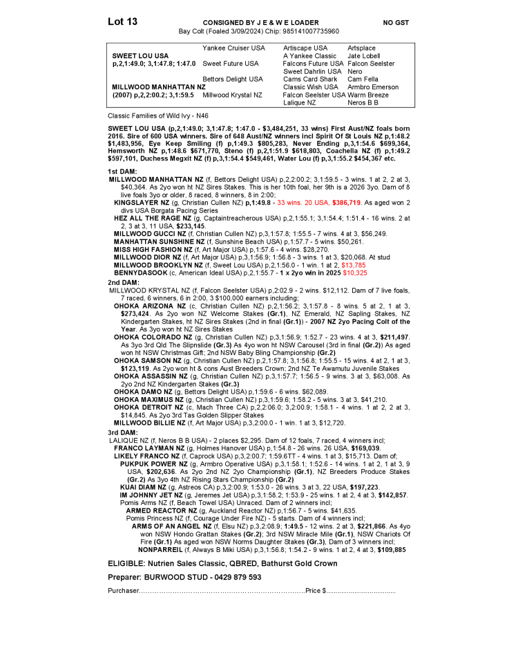 MILLWOOD MANHATTAN NZ 2024 COLT