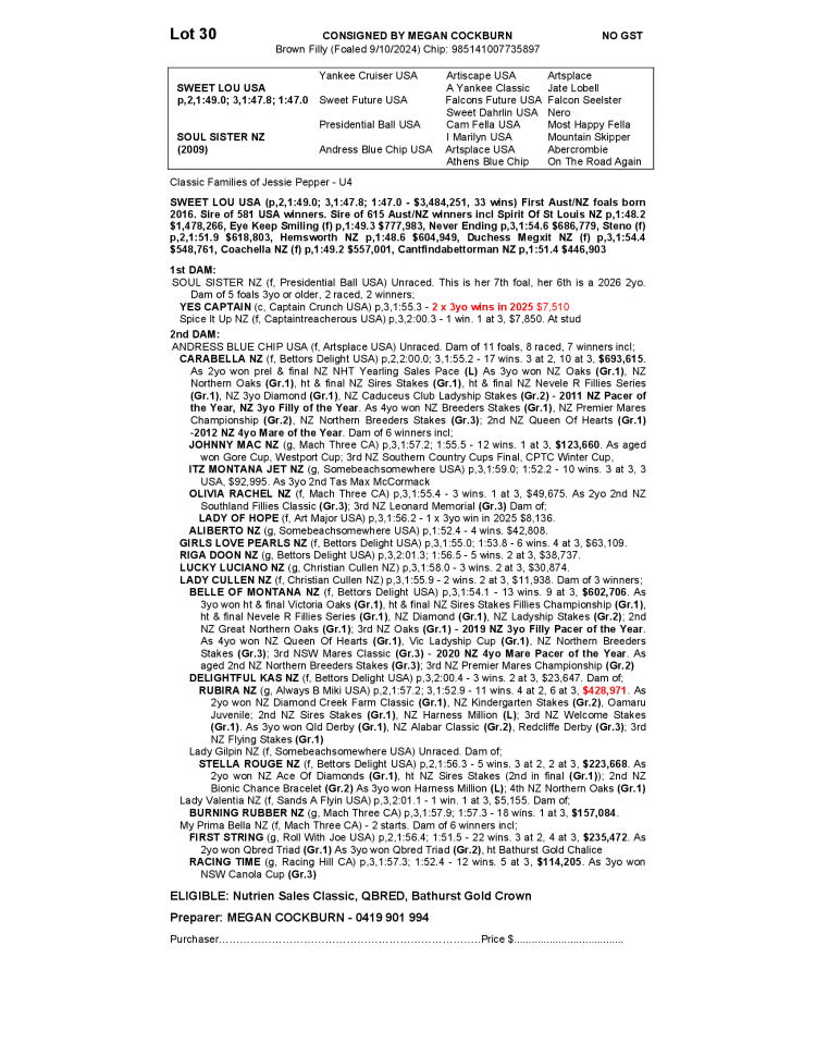 SOUL SISTER NZ 2024 FILLY